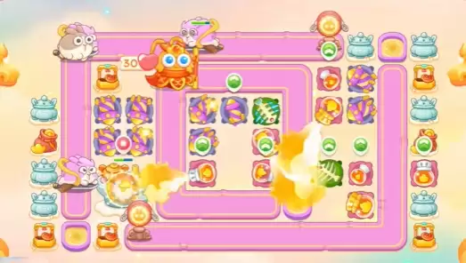 1、开局可以使用这个鱼骨塔来锁定这个钱袋。清理出现空位就补充上这个喷火瓶子。