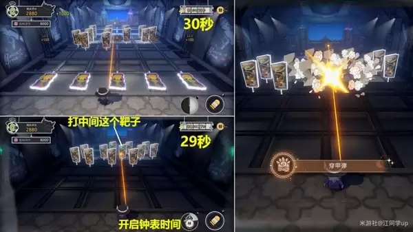(2)然后等剩余时间到29s时(最后一波),等出现第2个【惊梦烟花靶子】时,然后再开启「钟表时间」,接着将2个【惊梦烟花靶子】任意一个打了之后,就可以通过2个【惊梦烟花靶子】打掉全部【王下一桶靶子靶子】,接着关闭「钟表时间」后,即可获得该成就