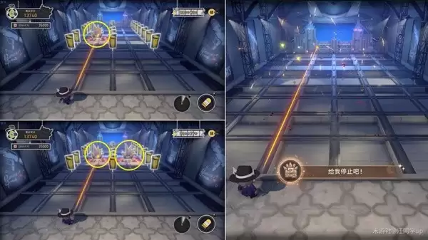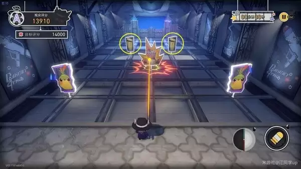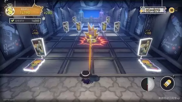 (5)【石头老板靶子】是不断移动的,血量很厚,需要打很多次才能打死,如果被【石头老板】攻击到会扣除大量分数,遇到后,可以用「钟表时间」将其暂停住一直打
