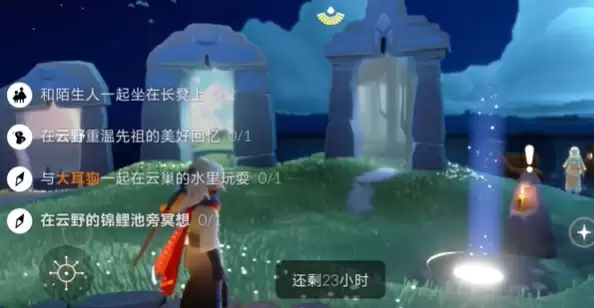 光遇5月14日的每日任务有哪些?首先就是要和一个小黑坐在长凳上一次,然后在云野上重温一下这个先祖的美好回忆,然后在到云野的锦鲤池旁边的石碑上冥想,最后在与大耳狗一起上到云巢的水里面玩耍就可以完成今日的任务了。
