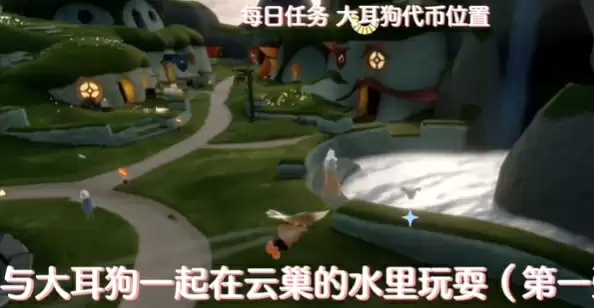 4、然后需要和大耳狗一起在云巢的水里玩耍。