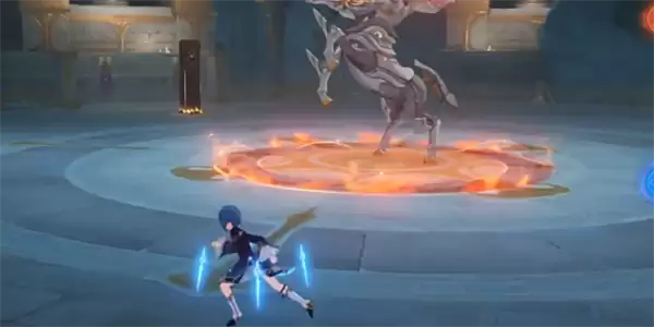 4、当释放大招时敌人会先放出一个火圈,当他高举武器的时候我们进行破盾,就可以轻松取得成就了。
