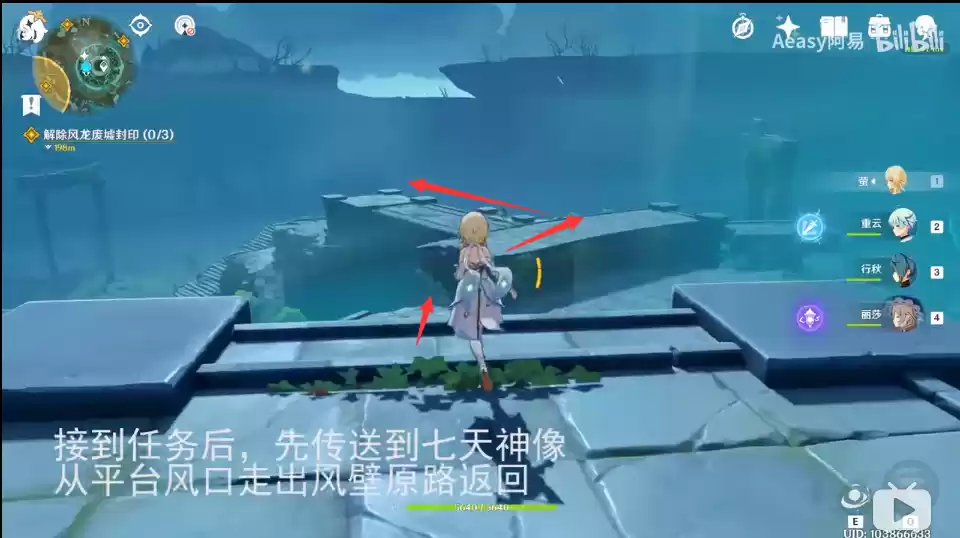 2、接着玩家需要寻找三个封印,先传送到七天神像旁边,从风口旁过去,因为风口有屏障所以我们不能从风口直接出去。