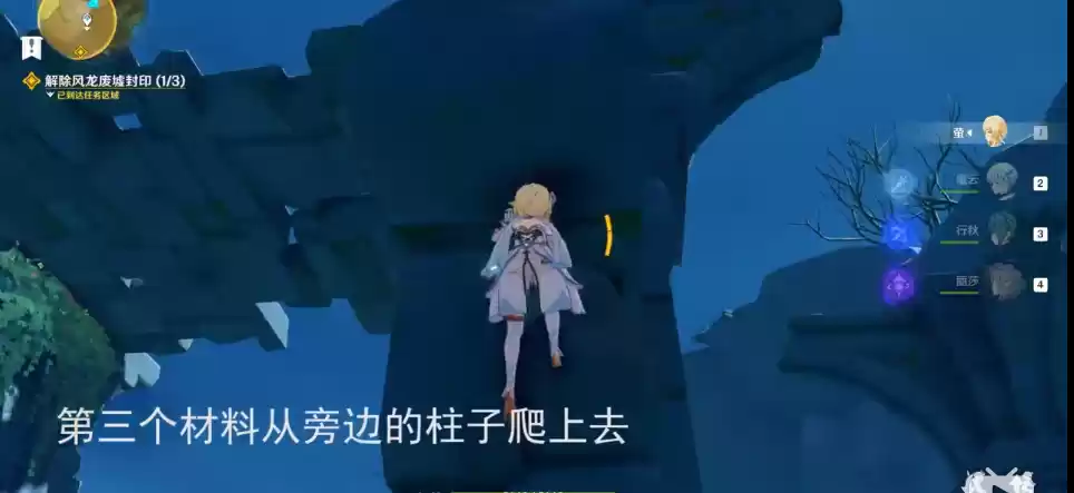 从旁边柱子爬上去,往里面跳就能拿第三个光点了,拿到三个之后屏障会自动破除。