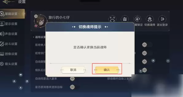 4、之后会弹出一个切换魂师的提示,在这里我们点击【确认】;