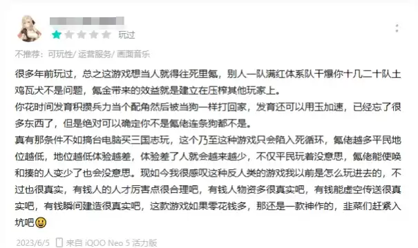 这些抱怨,都围绕着“肝氪”两个关键字眼。但事实上,这并不是SLG这个品类铲除不掉的恶疾,之所以形成这种印象,是因为品类中的产品摆烂、圈钱风气盛行,并且大家还纷纷效仿头部厂商对游戏以及玩家不负责、不上心的行事态度。久而久之,玩家自然会逐渐心寒,甚至对整个品类失去信心,提到SLG就PTSD也不难理解。