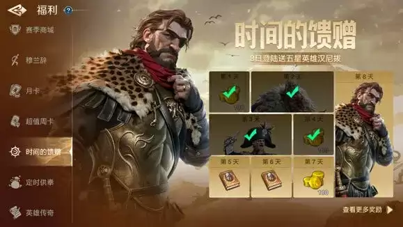 游戏通过签到免费直送五星英雄卡,蓝牙王、汉尼、独眼元帅等强力英雄通过签到即可领取。而且这些英雄并不是无用的鸡肋角色,而是战力强,泛用性广的角色,比如蓝牙王、汉尼、独眼元帅组成的签到队,不仅能在开荒期大放异彩,在打仗中也是一把好手。签到队完全可以帮助新手玩家平稳度过第一赛季,拥有一个赛季还不错的SLG体验。