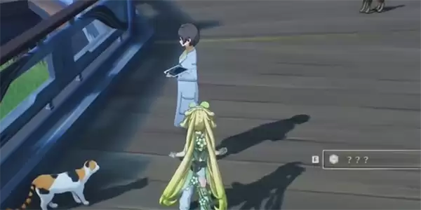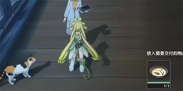 2、桥上有个NPC旁边有一只猫,我们和她进行对话接受任务。