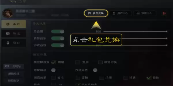 3、在基础设置里点击礼包兑换。