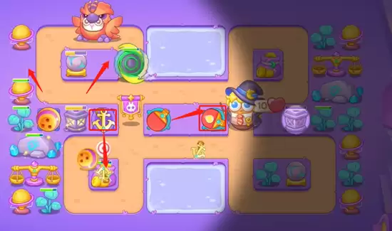 3、开始向右边开图,点亮灯之后我们还是优先打掉小道具然后获得位置放置船锚,继续清理掉周围的道具。