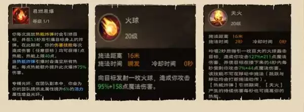 火球:向目标发射一枚火球,造成你攻击95%+158点魔法伤害。