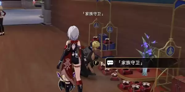 2、我们先后分别与家族的守卫以及侍者进行交谈,然后来到餐桌前和托帕的宠物账账进行对话。