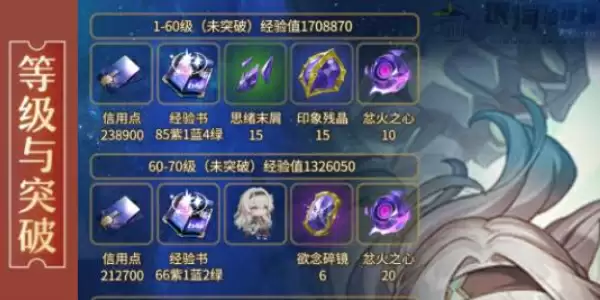 1、角色等级突破材料