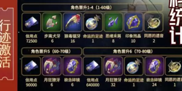 4级到5级:狼毒锯牙*5+印象残晶*3+信用点*2w