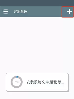 1、首先直接下载游戏APP后,然后进行解压安装启动器,等待安装完成好系统文件后,点击右上角【+】号创建容器;如下图所示。