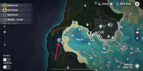 30级以上水形幻人掉落,水形幻人位于枫丹水下的希望之路附近,具体位置如下图所示。