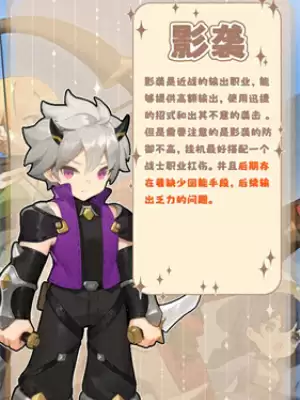 影袭是游戏中的爆发型近战输出角色,自身可以给敌人挂上减益效果,但自身的生存能力较差,容错率较低。