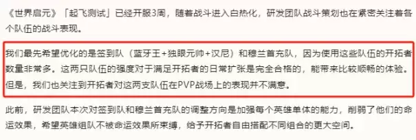 在《世界启元》有一支签到就可以免费获取的签到队伍,测试中的无数战报表明,这支签到队伍拥有足以和大佬的队伍掰掰手腕的强劲实力,并且,游戏还在此前的一份公告中表示,后续会对这支签到队伍进一步加强,摆明了愿意为平民玩家考虑的态度。有这么一支队伍存在,即使你不用游戏赠送的所有金币和抽卡资源,也能获得良好的游戏体验。
