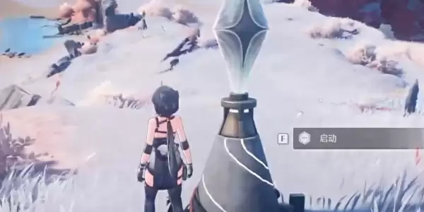 2、出信标后,我们根据指引往东北方向移动,然后利用弹跳装置来到山顶上启动肇始之台。