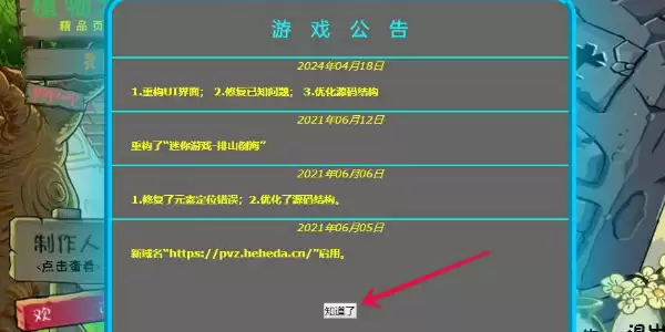 3、点击开始游戏按钮后,会出现对应的游戏公告,我们只需要点击下方的【知道了】就可以进入游戏中。