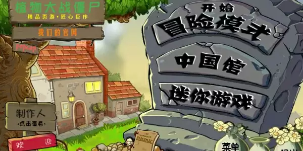 4、在植物大战僵尸网页版主界面可以看到分别有【冒险模式】、【中国馆】、【迷你游戏】三种模式,以及多个游戏菜单等设置。