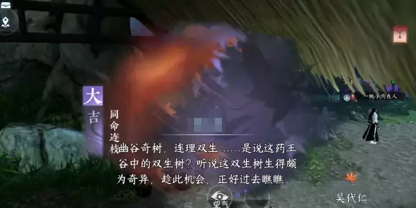 1.首先前往药王谷【597,514】点击【捡起】地上的纸团,触发大吉奇遇【同命连枝】。