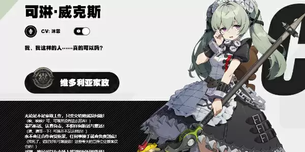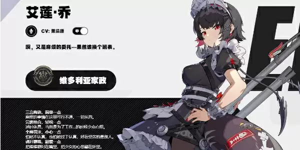 电属性五星支援角色,开服唯一的五星支援角色,可提高伤害穿透率和给予队友电属性伤害加成,可与【格莉丝.霍华德】组成一队。
