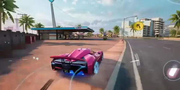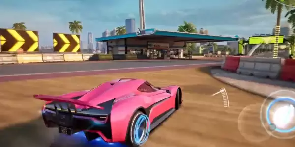 5.在赛道中遇到加油站时玩家可以通过加油站来补充氮气,使赛车能够一直保持极速行驶。