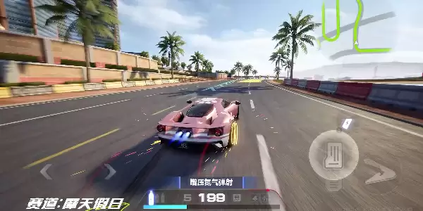 4.玩家可以将操作按键调整到自己习惯的一个角度,是氮气加速功能放在油门和刹车的中间位置,之这样设置可以使我们在竞速的时候更好的加快速度。