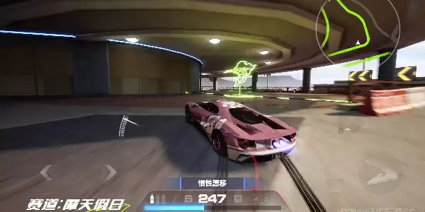 3.在指示牌的指引进行拐弯,当我们刚刚拐弯结束后需要利用油门弹射的技能加足马力使劲向前冲刺,在冲刺的过程中也要进行操作,从而灵活的躲避道路上的各种障碍。