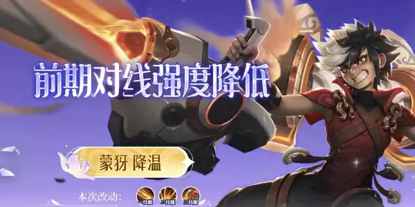 本次改动将蒙伢的前期对线强度降低;改动技能:一技能,二技能,三技能。