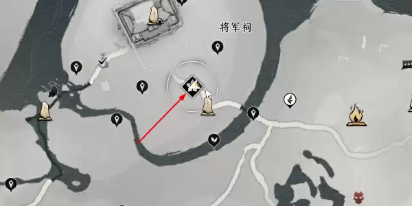 1.玩家打开地图,传送到将军祠附近的枯井,位置如下图所示;来到枯井后如果没有触发对话,可以将时间调整到亥时就会出现“向井中询问”的按钮。