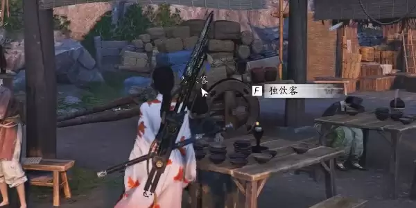2.来到酒棚中找到一位独饮客,与他对话选择请他喝酒就可以接取任务。