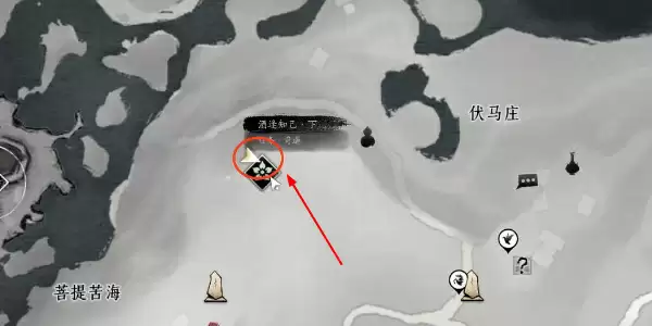 4.打开地图传送到菩提苦海右上角图中标记的位置。