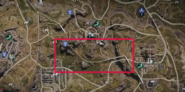 1.可前往破碎三角洲,如图指定地点,沿主干道侧有蘑菇可以采集,概率获取庞然大菇。