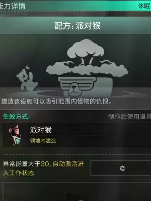 1.在首次收容以后会获得派对猴的制作配方,当异常能量大于30时,自动激活进入工作状态,生成制作派对猴所需的材料。