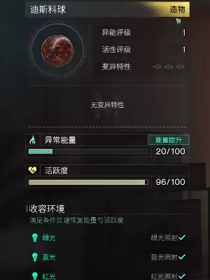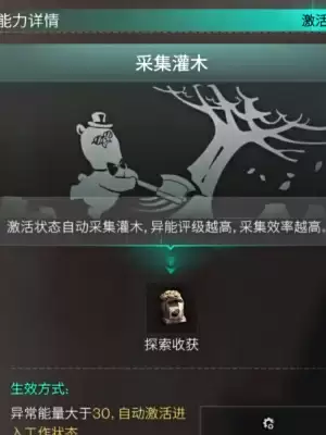 在异常能量大于30时,会自动进入工作状态,激活状态会自动采集灌木,包含蔬菜水果种子。