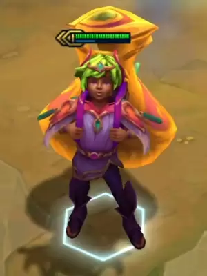 他的技能是可以给队友发装备,在发装备的同时还有可能出现金币和蓝色法球。