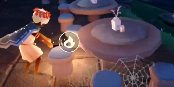 2、在玩家旁边的桌子上就有蜘蛛网,我们可以使用蜡烛把蜘蛛网烧掉。