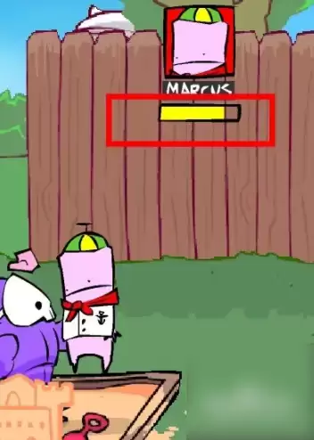 当你扁他的时候你会发现屏幕上方有一个这个小朋友的血条,把它打到空血他就消失了。