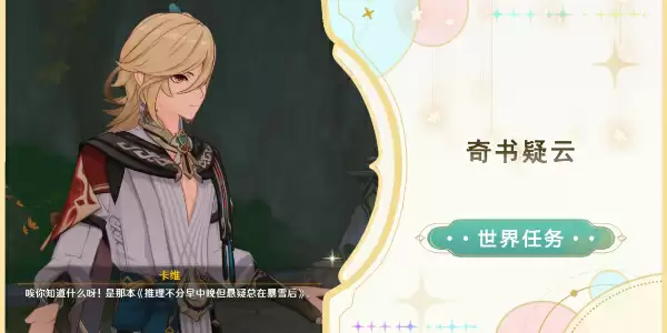 原神奇书疑云任务怎么做?奇书疑云任务是玩家在做完4.8活动任务后接取到的一个隐藏彩蛋任务,很多玩家不知道奇书疑云任务具体的流程是什么,小编下面就为大家带来详细的任务攻略,还不知道怎么做的小伙伴可以来看看。