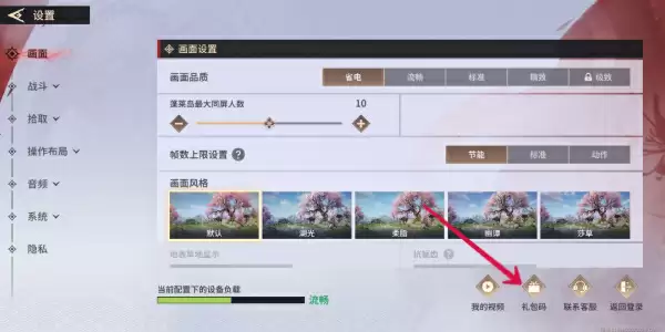3、进入设置界面我们找到右下角的“礼包码”功能选项,点击进入。