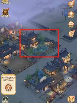 1、玩家进入游戏后,在主页面点击一处建筑物进行升级,如兰亭。
