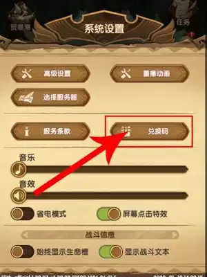 2、在【系统设置】页面找到【兑换码】,点击然后就输入上方8月最新兑换码,即可领取奖励。