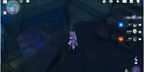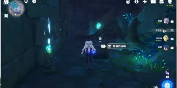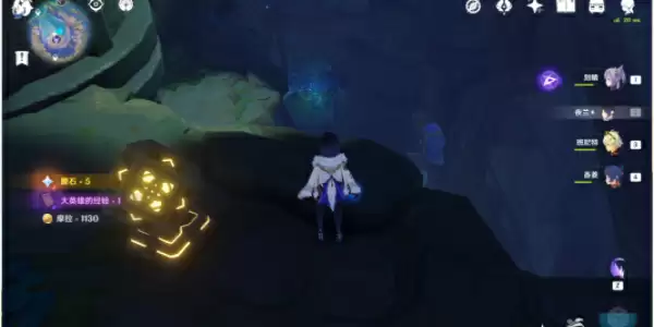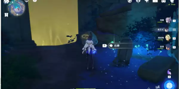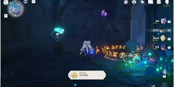 3、与水边的开关交互,观看动画后水位下降,往地图西方向飞到对面的雷樱枝条位置。