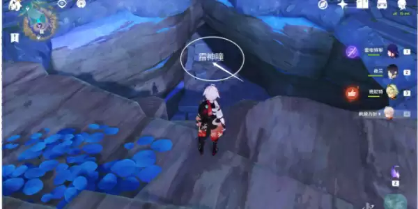 1、玩家完成天云峠石板解密后往地图西北方向走,前往天云峠水池边,打开风之翼往地图西北方向飞,击碎碎石,获得雷神瞳。