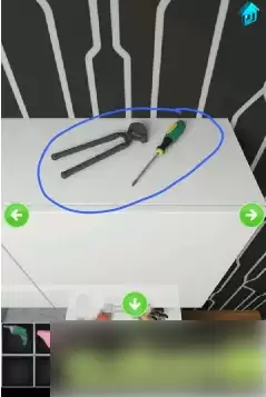 点击钳子然后选定铁丝,再点击钳子,会组合出一个铁钩;用螺丝刀取下水槽中的轮子;在用钩子勾出一个长钉