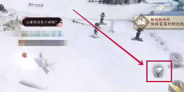 1.在坐标昆仑墟【952,1148】点击右侧的图标【张望】,即可触发昆仑墟中吉奇遇【雪中有炭】。