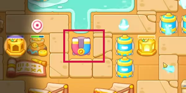 3.在正中间放置一个磁铁并进行升级,随后标记左侧的障碍物攻击清理。