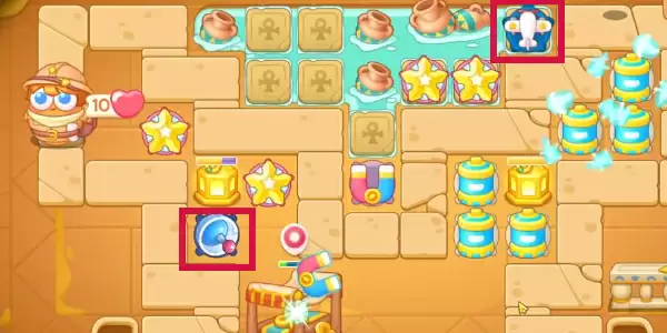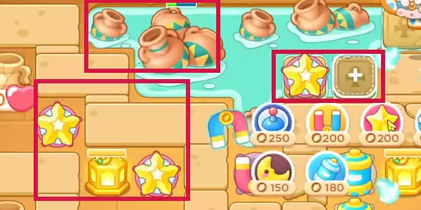 4.在左侧障碍物被清理掉以后,放置五角星,并进行升级,标记攻击左侧的灯,随后攻击左上角的障碍物,清理完成以后再放置一个五角星进行升级,将上方水池的罐子障碍物全部清理掉,并放置多个五角星升级。